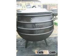 Material: cast iron Size: 2#, 6#, 10#, 14#, 20# and 25# Coating: vegetable oil inside and black painting outside Packing: in wooden crate Characteristic: long heat keeping, durable, convenient outdoor, with African culture, and doing good to human body.